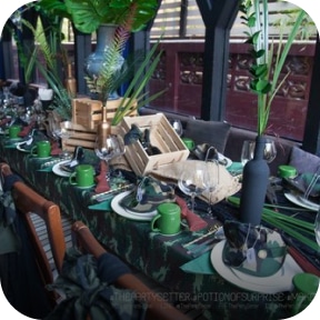 Army Party Theme Inspired by the iconic military camouflage, this theme combines strength and power with a touch of beauty and sensuality to celebrate the victorious soldiers. It tells the story of the masculine strength of the warriors and the celebration of femininity that completes the victory, creating a lively and sexy atmosphere. This theme transforms the intensity of the military world into a fun, thrilling night, full of energy and unforgettable moments, leaving you wanting more.