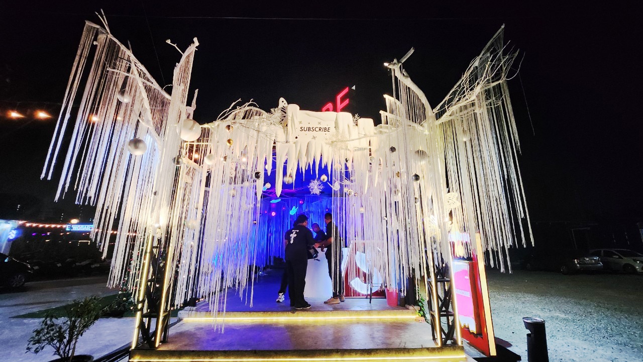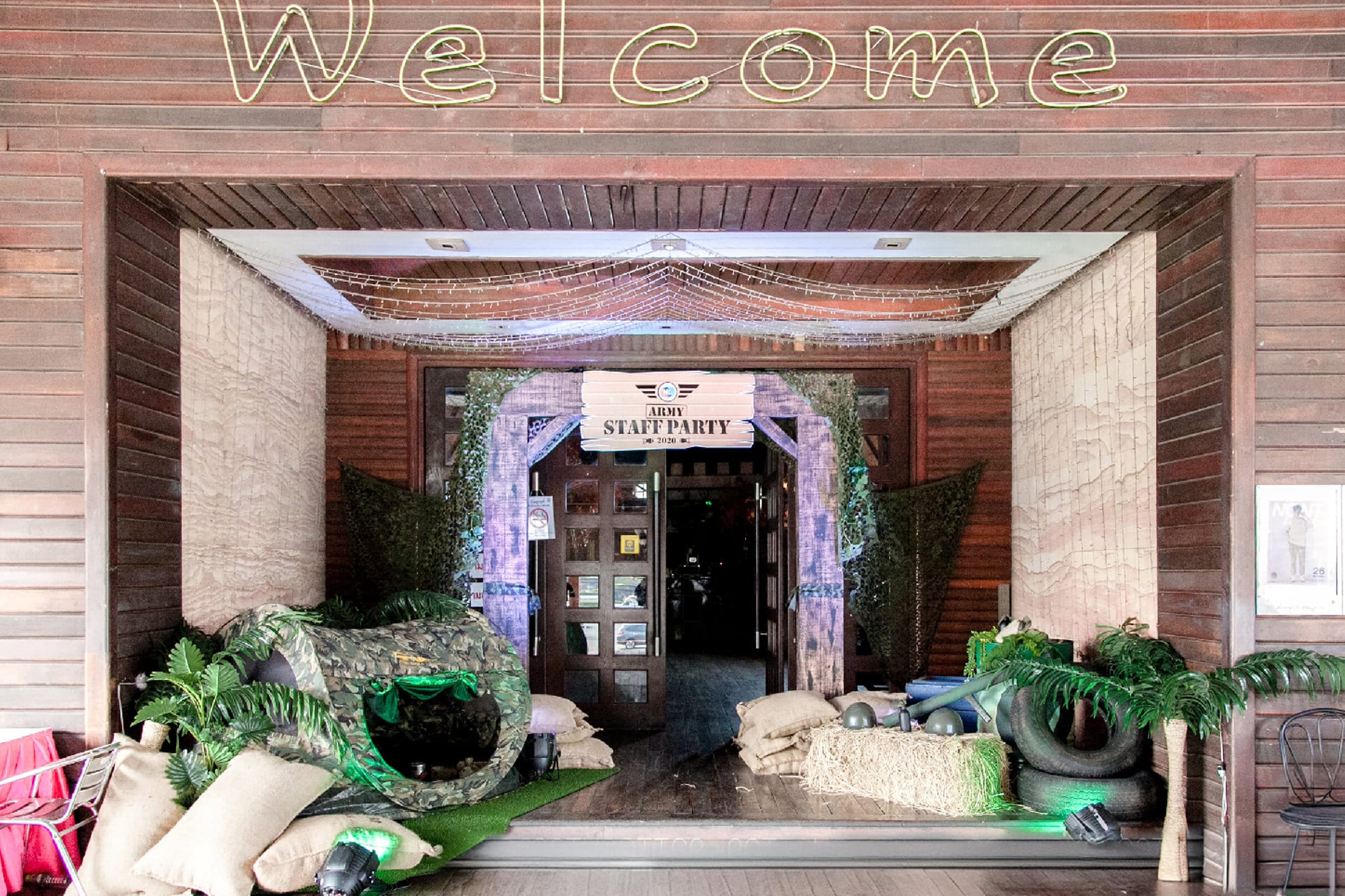 ซุ้มทางเข้าขนาด 3x3m รวมหน้ากว้างทั้งหมด 5 m เหมาะกับงานที่ต้องการ บีทางเข้าให้ได้เดินรอดผ่านเพื่อเข้าภายในงาน