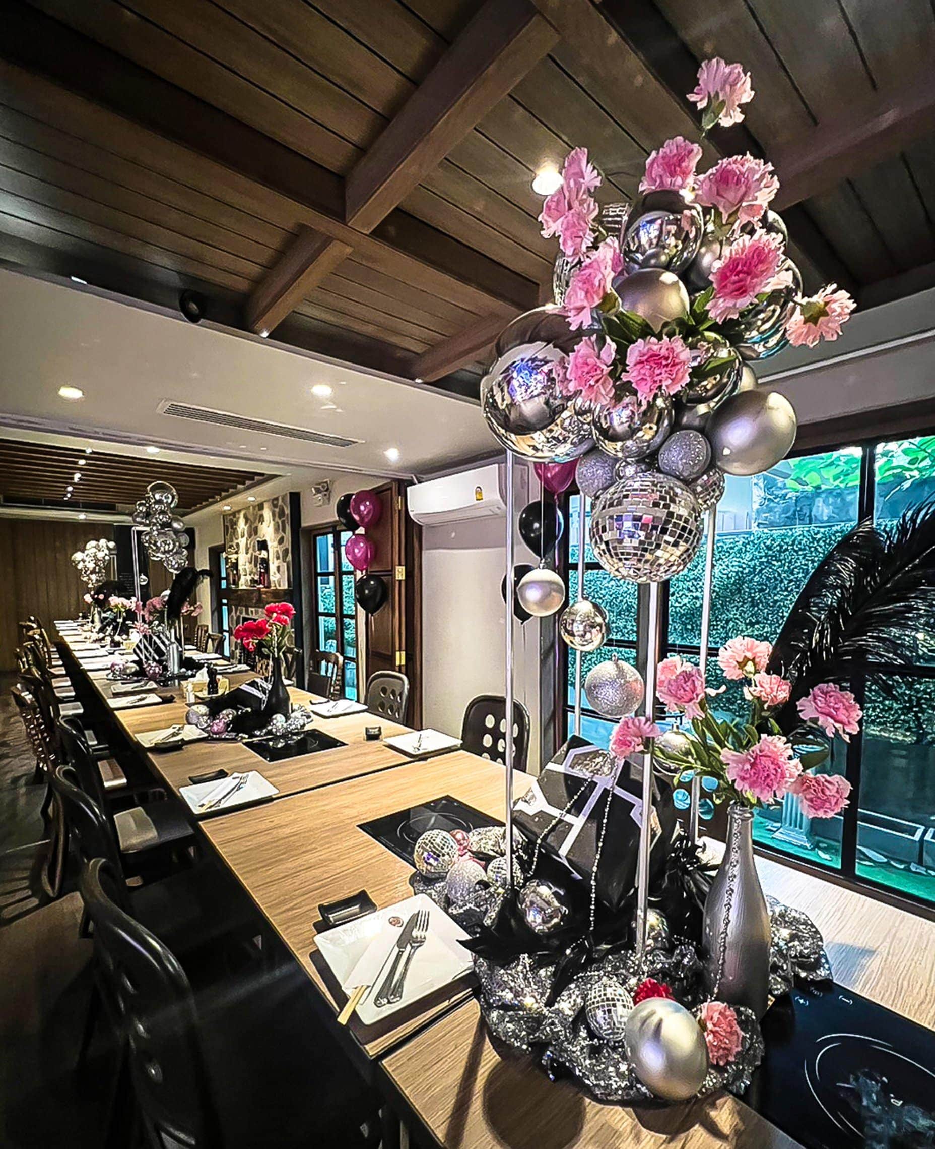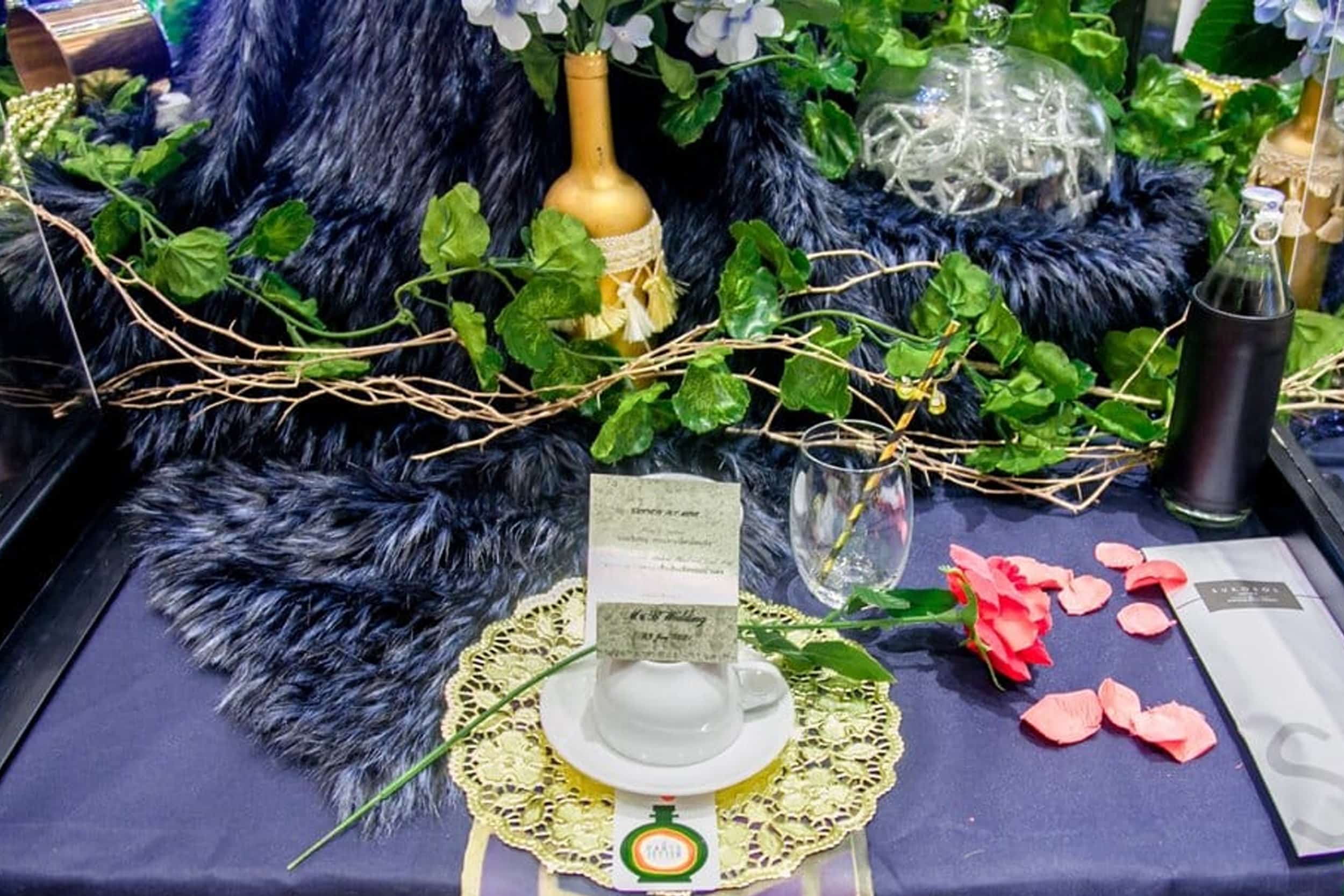 ตกแต่งโต๊ะตามธีมสำหรับ 10 ท่าน เป็นการเน้นการdisplay จุดถ่ายภาพที่เป็นโต๊ะอาหารแนว vip จัดเต็ม เพื่อให้ แต่ละท่านที่อาจจะแต่งตัวมาเต็มได้ วนแวะมานั่งถ่ายภาพร่วมกัน กับ โต๊ะ vip นี้ โดยจานชามช้อนส้อมจะไม่สามารถทานได้ เพราะเป็นการตกแต่งเพื่อการ display เป็นหลัก