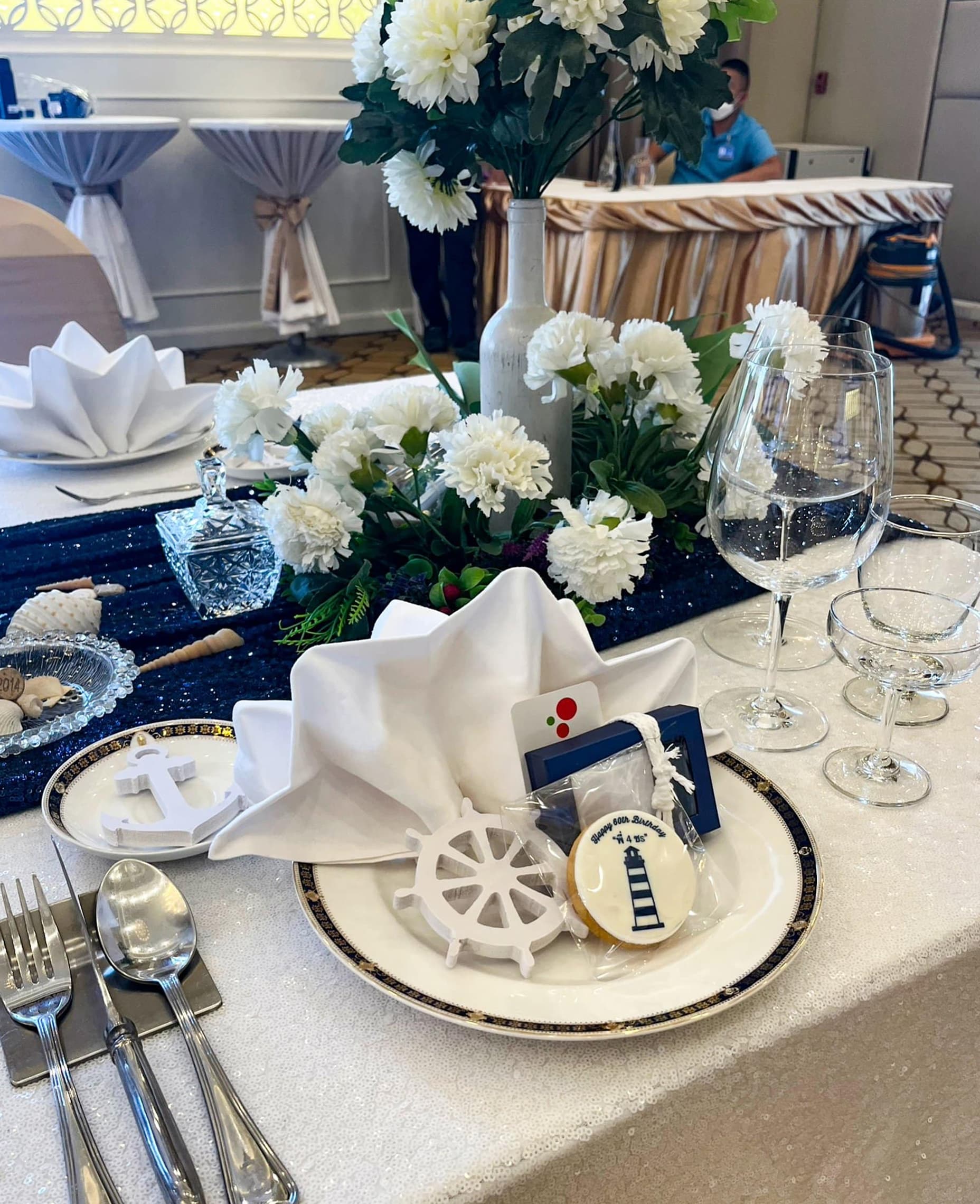 ตกแต่งหน้า plate สำหรับ 10 ท่าน จุดนี้จะเป็นการตกแต่งที่เป็น detail เล็กแต่ เป็นสิ่งที่ใกล้ตัวแขกที่มางานที่สุดที่จะได้รู้สึก อินไปกับงานและรู้สึกว่างาน ให้ความสำคัญเป็นอย่างยิ่งถึงรายละเอียด และก็จะทำให้แขกรู้สึกถึงความสำคัญที่ได้มาร่วมงานมากที่สุด ถึงแม้จะเป็นจุดที่เล็กที่สุดก็ตามแต่เมื่อเป็นสิ่งใกล้ตัวแขกมาที่สุด ส่วนใหญ่แล้ว จะเป็นสิ่งที่ถูกถ่าย ร่วมกันหน้าของแขกที่มางานมากที่สุด