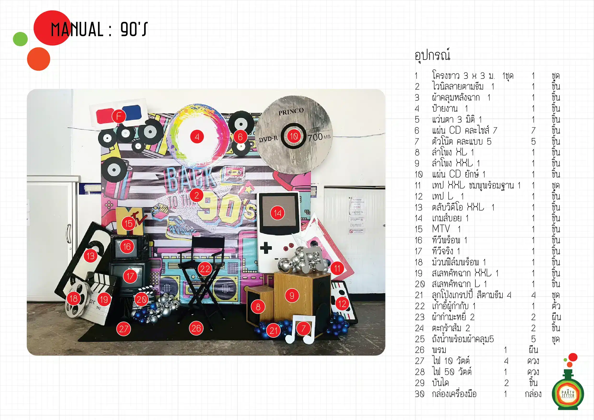 จุดเด่นคือ มีโมเดล prop ถ่ายภาพที่สามารถหยิบถือมาถ่ายกับตัวได้ ประกอบไปด้วย วิทยุยักษ์ แผ่นซีดียักษ์ เกมส์บอย เกมส์แพ็คแมนยักษ์ และบรรยากาศอุปกรณ์เครื่องใช้ต่างๆ ที่ไม่สามารถเห็นได้แล้วในยุคนี้ เหมาะกับงานวันเกิด เซอร์ไพรส์วันเกิด งานแฟนซี ตกแต่งสถานที่ งานเลี้ยงบริษัท ที่อยากย้อนวัย ย้อนเวลา
