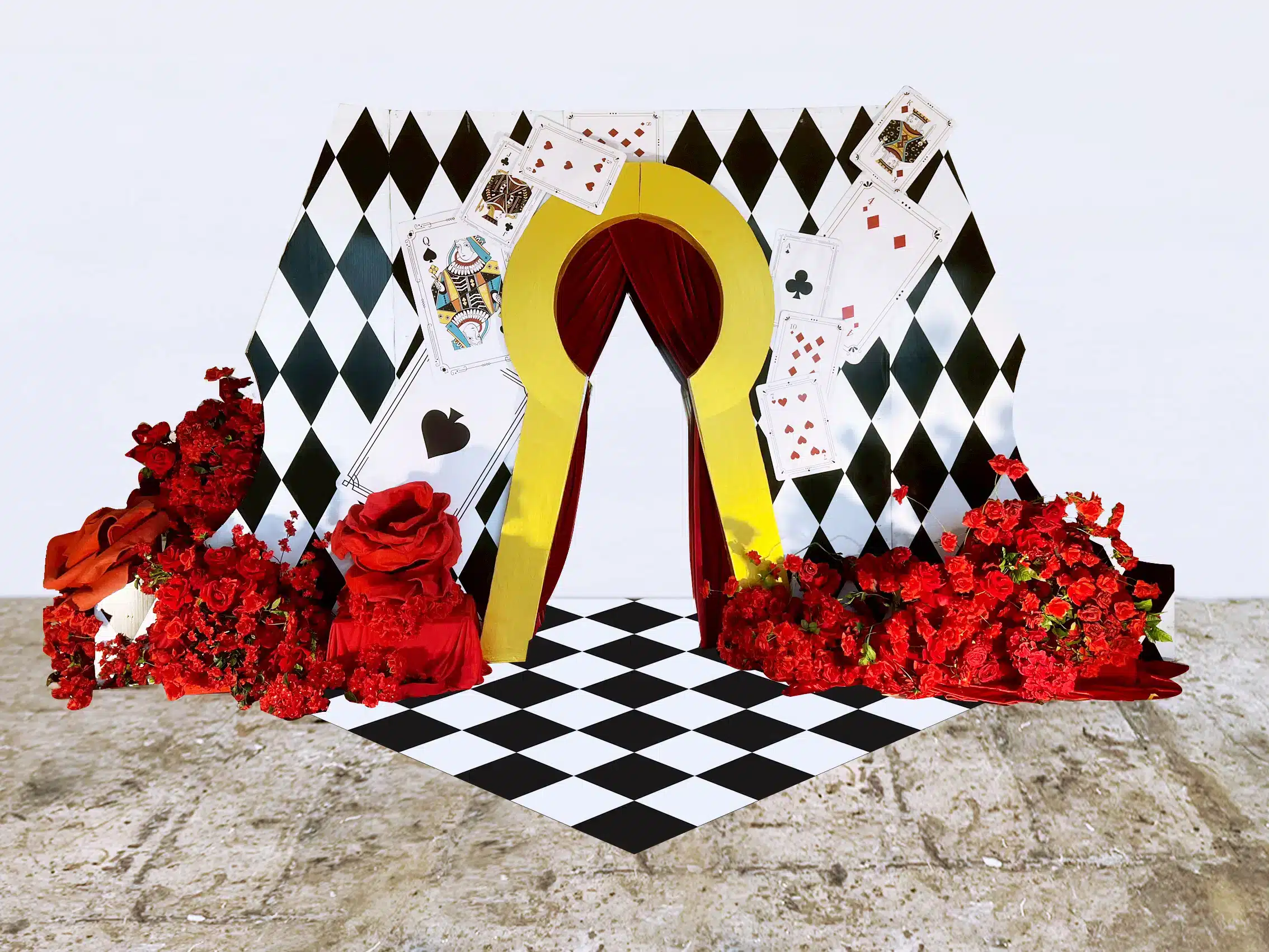 จุดเด่นคือ ภายถ่ายที่จะได้จากงานนี้ จะเหมือนคุณได้เป็นส่วนหนึ่งของนวนิยายเรื่องนี้ ประกอบไปด้วยเห็ดยักษ์ ฝูงโมเดลไพ่ยักษ์ โต๊ะน้ำชาสุดหรูแต่มีความพิศดารในเวลาเดียวกัน เหมาะกับงานวันเกิด เซอร์ไพรส์วันเกิด งานแฟนซี ตกแต่งสถานที่ งานเลี้ยงบริษัท หรือ งานปาร์ตี้ ที่ต้องการหลุดออกไปจากโลกความจริงสักหนึ่งวัน