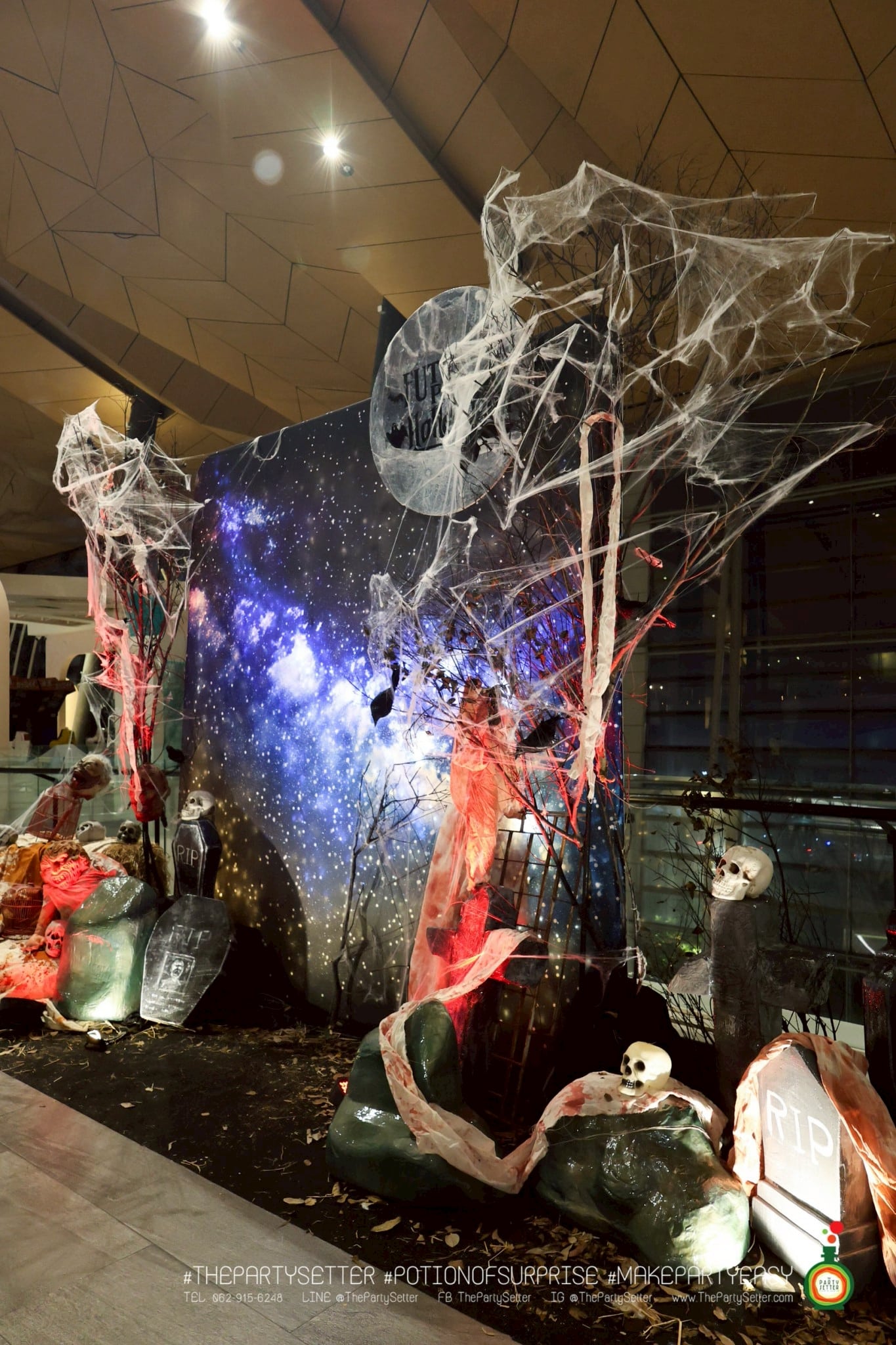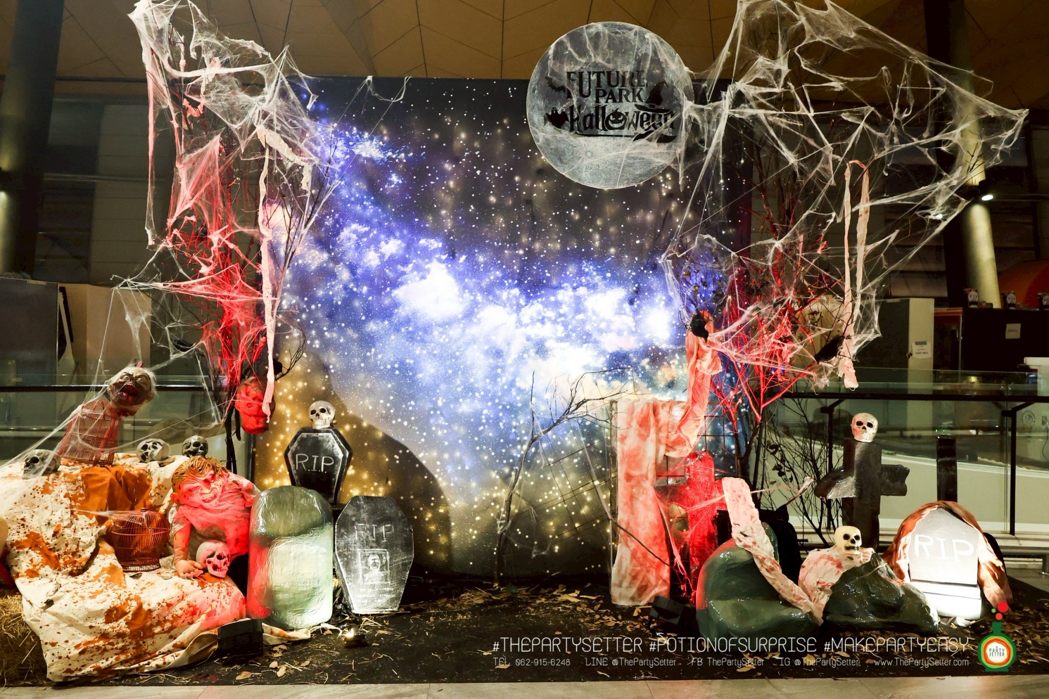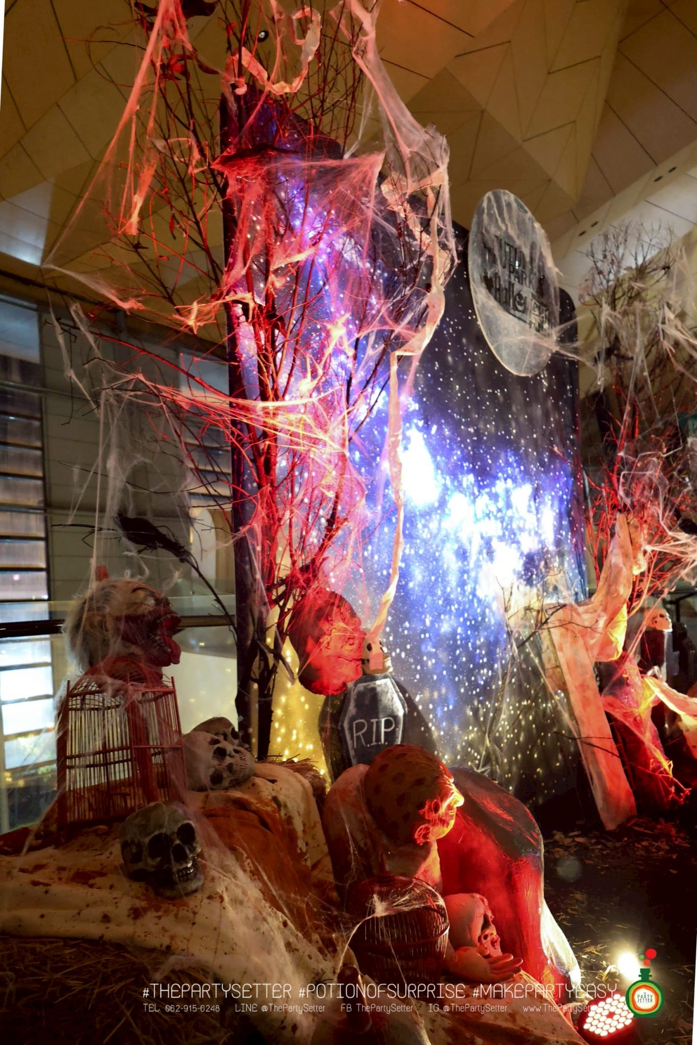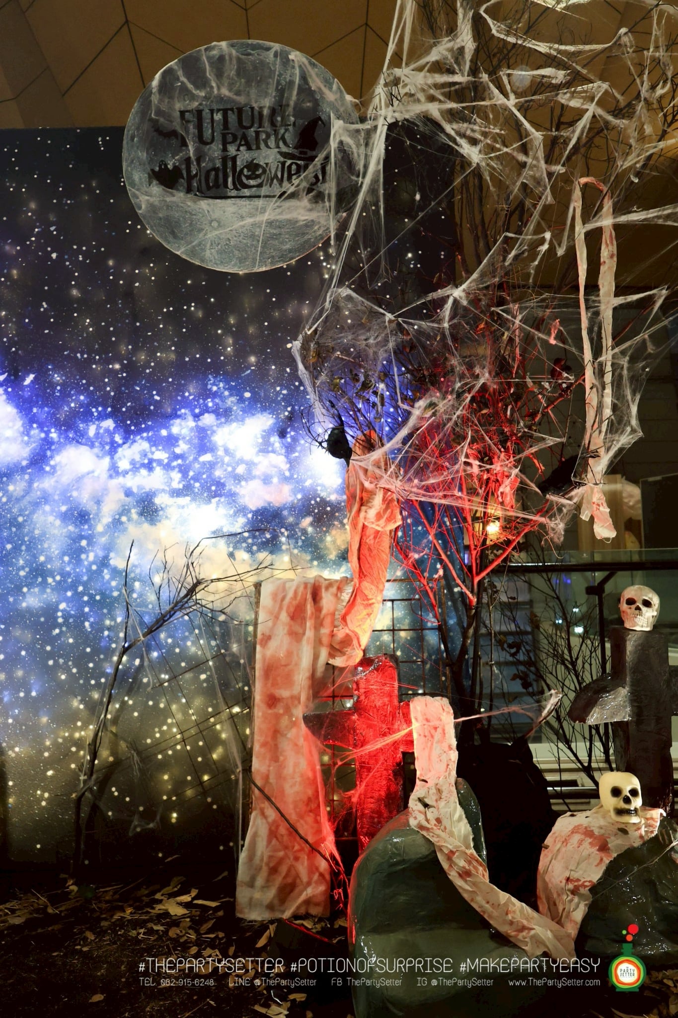 The Red Moon Halloween ธีมงานปาร์ตี้ได้แนวคิดมาจาก เทศกาล ฮาโลวีน บอกเล่าเรื่องราวของ วันปล่อยผี ไม่ว่าจะเป็น ผีไทย ผีฝรั่ง ผีน่ารัก ทำให้คุณรู้สึกเหมือนได้สนุกกับกิจกรรมการแต่งกายหลากหลายแบบในวันปล่อยผีนี้