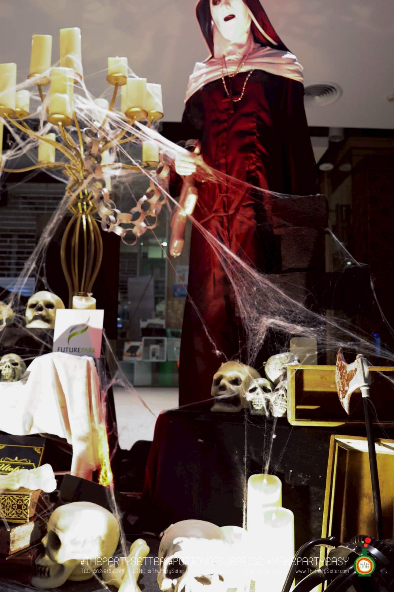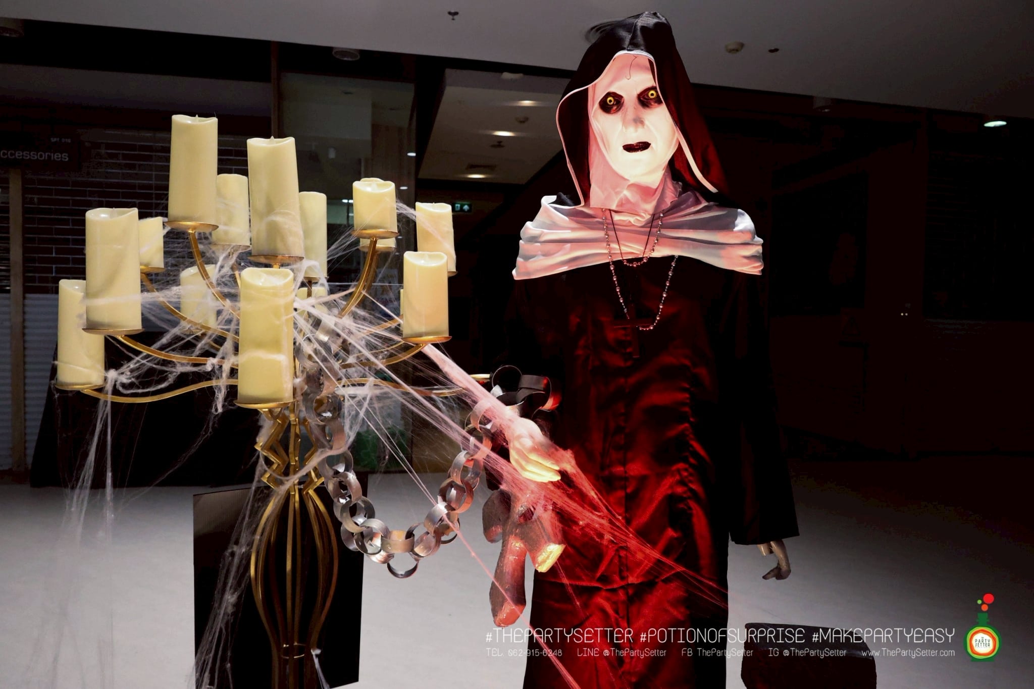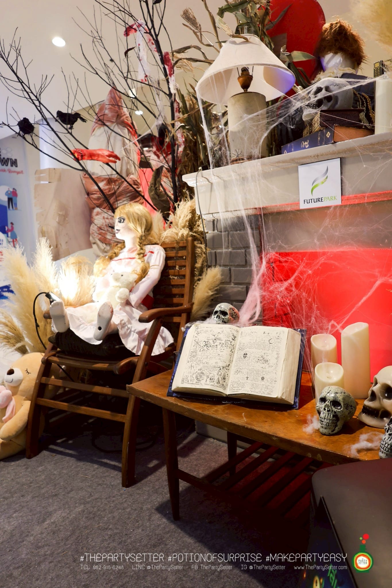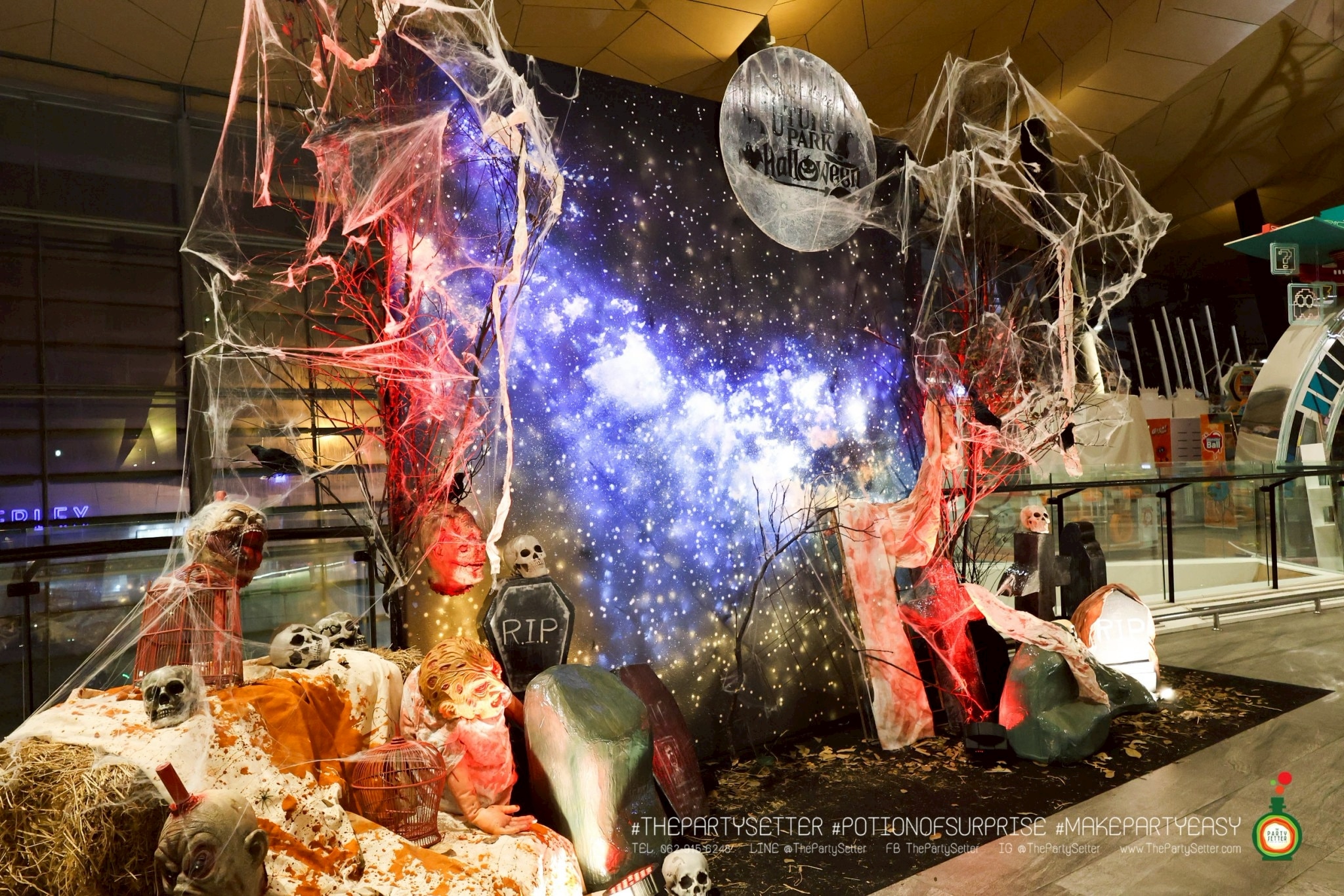 The Red Moon Halloween ธีมงานปาร์ตี้ได้แนวคิดมาจาก เทศกาล ฮาโลวีน บอกเล่าเรื่องราวของ วันปล่อยผี ไม่ว่าจะเป็น ผีไทย ผีฝรั่ง ผีน่ารัก ทำให้คุณรู้สึกเหมือนได้สนุกกับกิจกรรมการแต่งกายหลากหลายแบบในวันปล่อยผีนี้