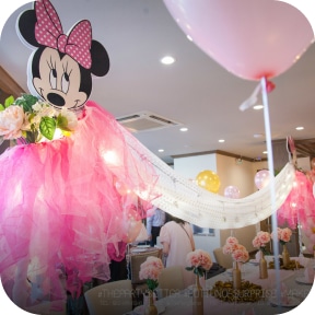 ธีม Minnie งานปาร์ตี้ได้แรงบันดาลใจมาจากตัวการ์ตูนที่เป็นตำนานศรีภรรยาของมิกกี้เม้าส์นั่นเอง คุณนายมินนี่เม้าส์ที่เด็กผู้หญิงชื่นชอบ บอกเล่าเรื่องราวของ minnie mouse แสนหวาน ทำให้คุณรู้สึกเหมือนย้อนไปสู่วัยเด็กที่นำหูหนูและโบยักษ์มาสวมหัวแล้วเดินเล่นในสวนสนุก disneyland