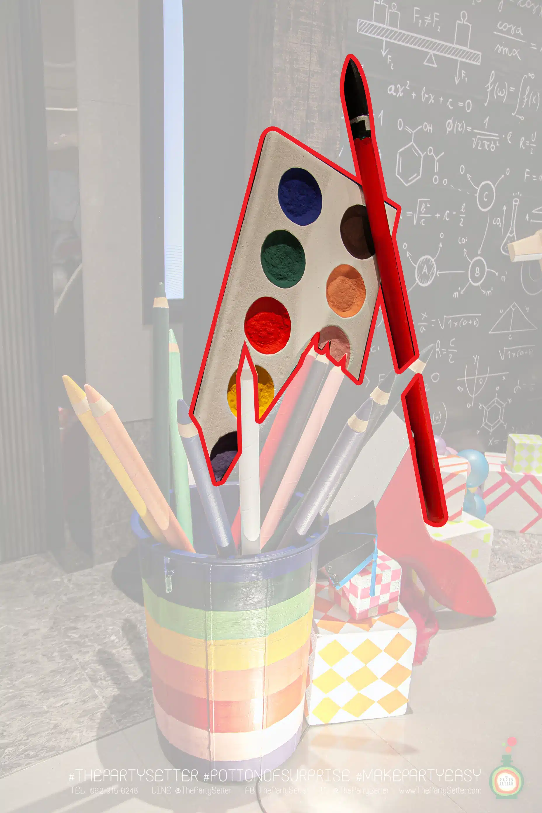 set ถาดสีพร้อมผู้กัน เช่าแยกชิ้น ขนาดโดยประมาณ 1.40x 0.8M และพู่กันยาว 1.50M